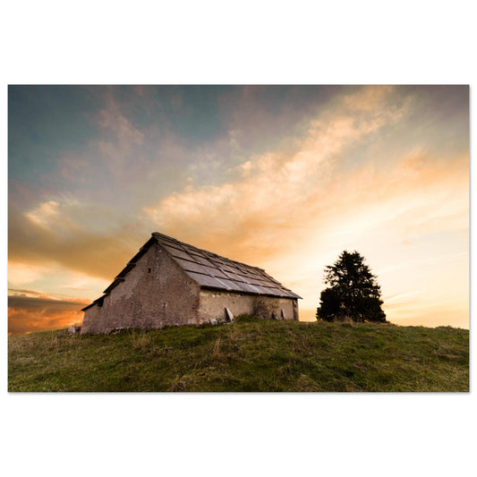 Stampa Foto Lessinia su Pannello - Malga al tramonto.